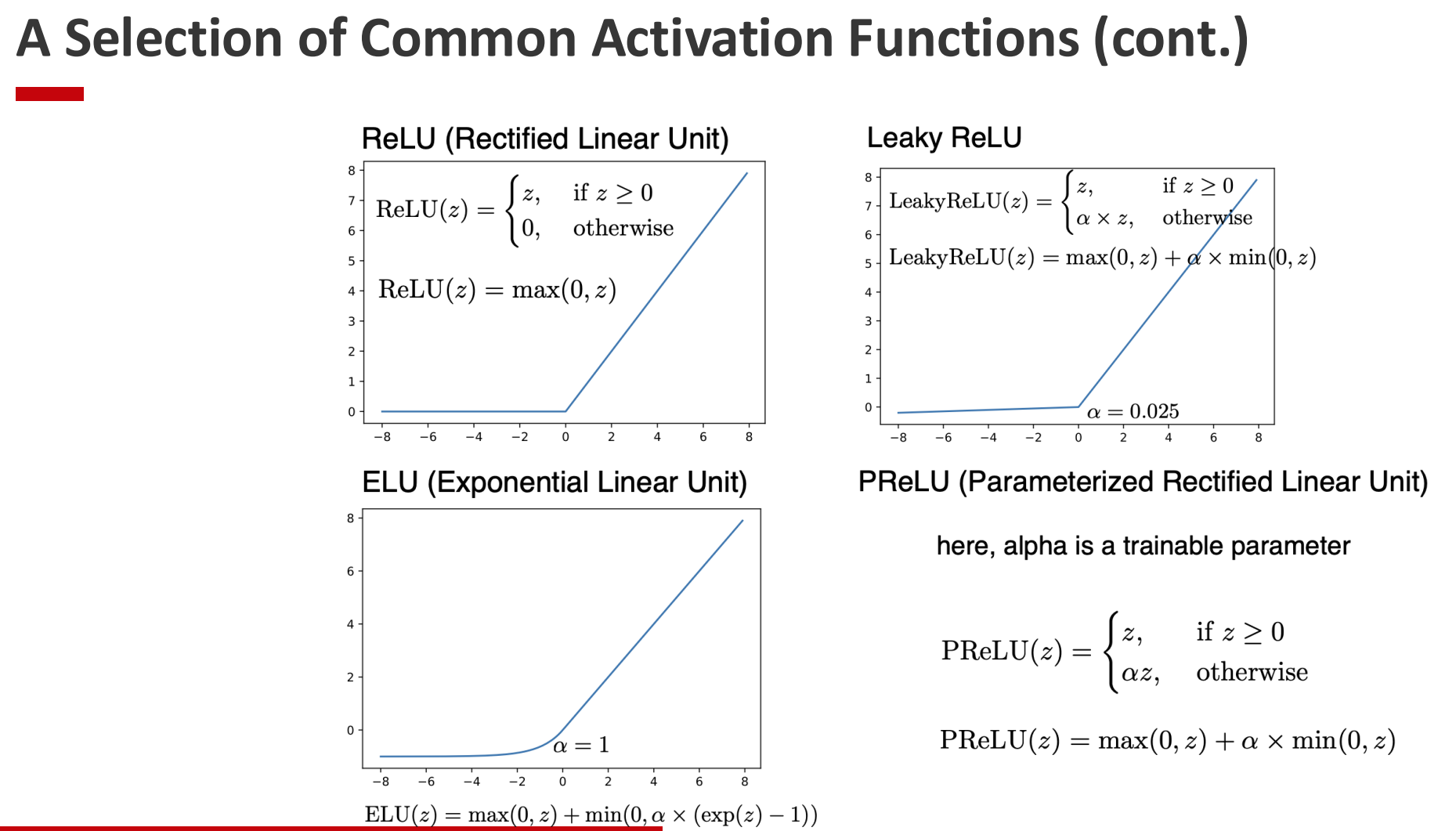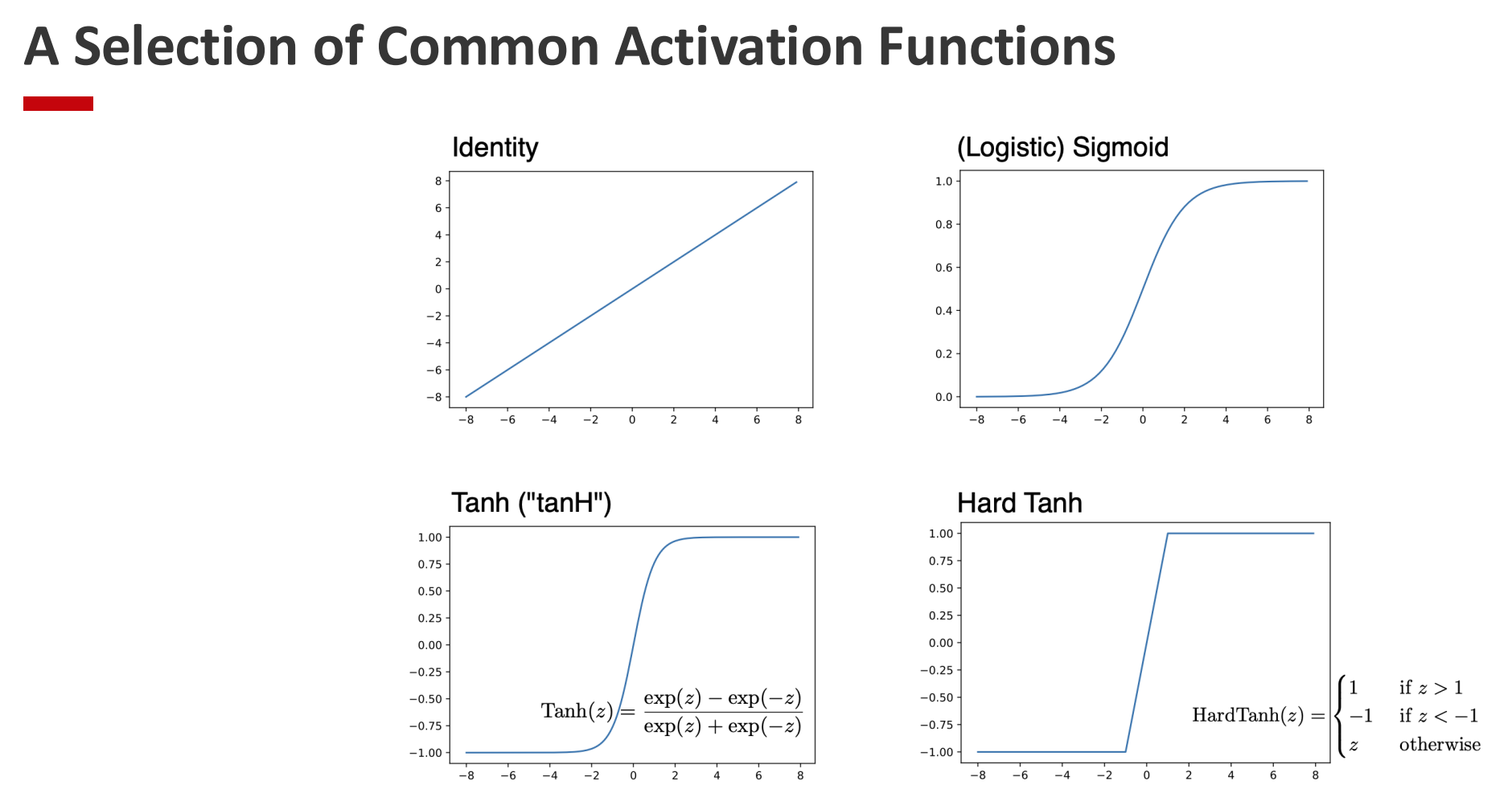 Several nonlinear activation functions are widely used. Each has its benefits and drawbacks: