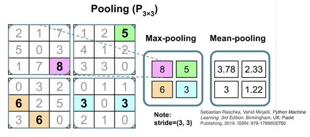 - Pooling operates over small, non-overlapping windows (e.g., 3×3).
